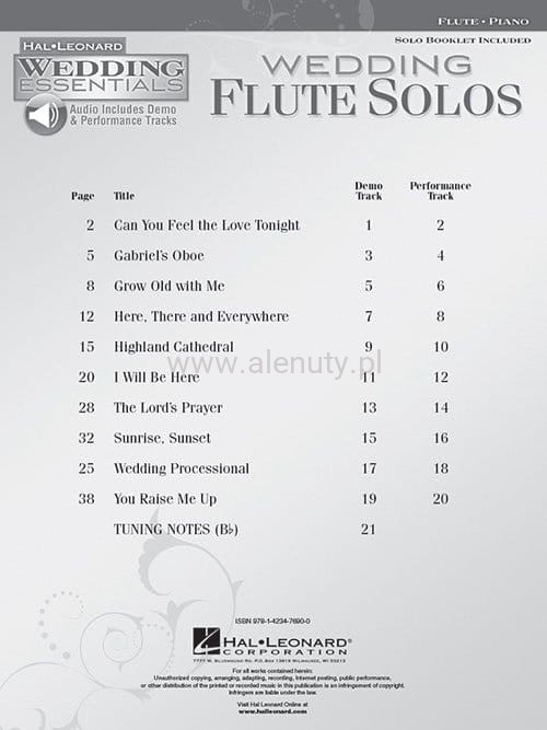 Wedding Essentials: Wedding Flute Solos (+ audio online) - utwory na ślub na flet i fortepian