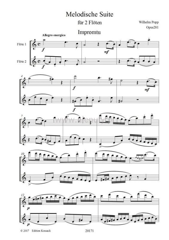 Melodyjna Suita na duety fletowe dla średnio-zaawansowanych i zaawansowanych. Utwór autorstwa niemieckiego flecisty i kompozytora Wilhelma Poppa (1828r.-1903r.)