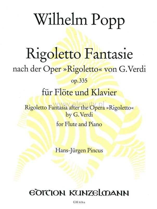 Rigoletto to opera w trzech aktach napisana przez Francesco Maria Piave na podstawie dramatu Król się bawi autorstwa Victora Hugo. Muzykę do niej skomponował Giuseppe Verdi. Początkowo opera miała być zatytułowana „Klątwa”, dopiero potem Verdi zmienił tytuł na „Rigoletto". Opera powstała na zamówienie dyrekcji Teatro la Fenice w Wenecji. Ta publikacja zawiera fantazje na jej temat kompozycji Wilhelma Poppa - niemieckiego kompozytora i flecisty. Opracowanie na flet poprzeczny i fortepian zawiera nuty dla średnio-zaawansowanych.
