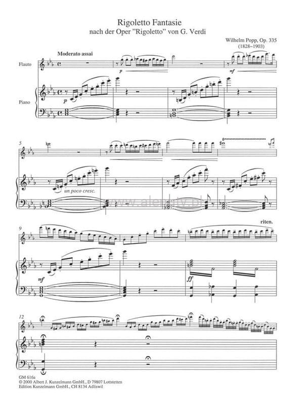 Wilhelm Popp: Rigoletto Fantasie nach der Oper 'Rigoletto' von Verdi op. 335 fur Flote und Klavier - Fantazja na temat opery Giuseppe Verdiego - nuty na flet poprzeczny i fortepian