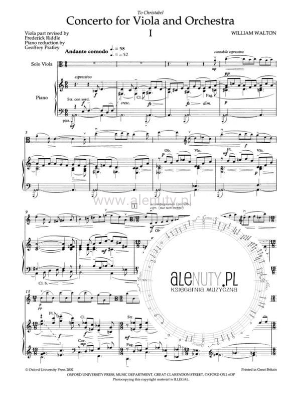 William Walton: Concerto for Viola and Orchestra - nuty na altówkę i fortepian