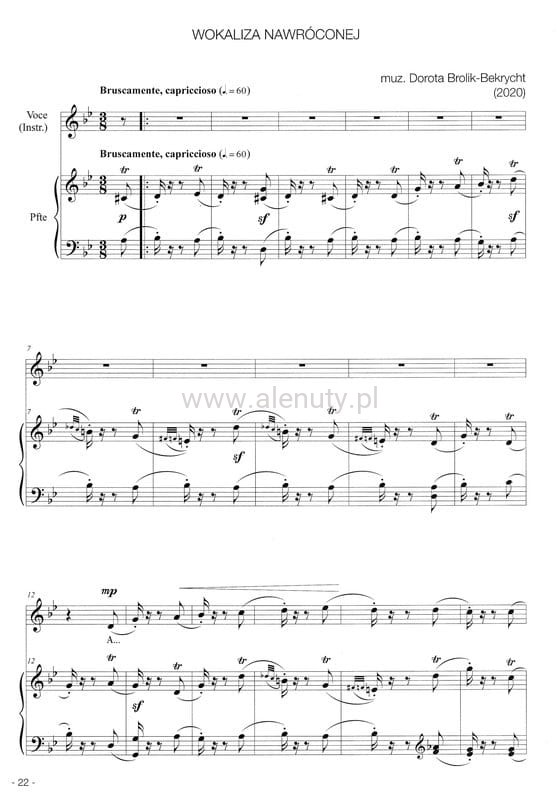Publikacja zawiera 'Wokalizy' Stanisława Moniuszko w opracowaniu Doroty Brolik-Bekrycht na głos lub flet lub klarnet i fortepian. Opracowanie zawiera osobny głos fletu i klarnetu.