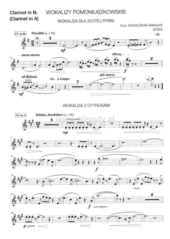 Wokalizy pomoniuszkowskie na głos lub flet lub klarnet i fortepian - Dorota Brolik- Bekrycht