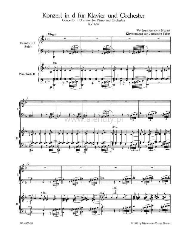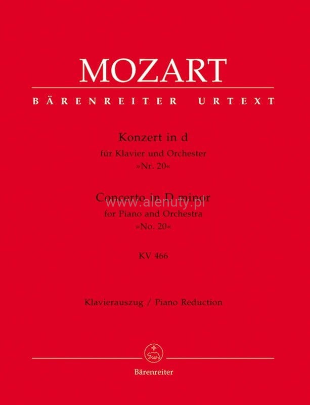 Wolfgang Amadeus Mozart: Concerto D minor No. 20 for Piano and Orchestra (KV 466) - XX Koncert fortepianowy d-moll - wyciąg fortepianowy - nuty na dwa fortepiany