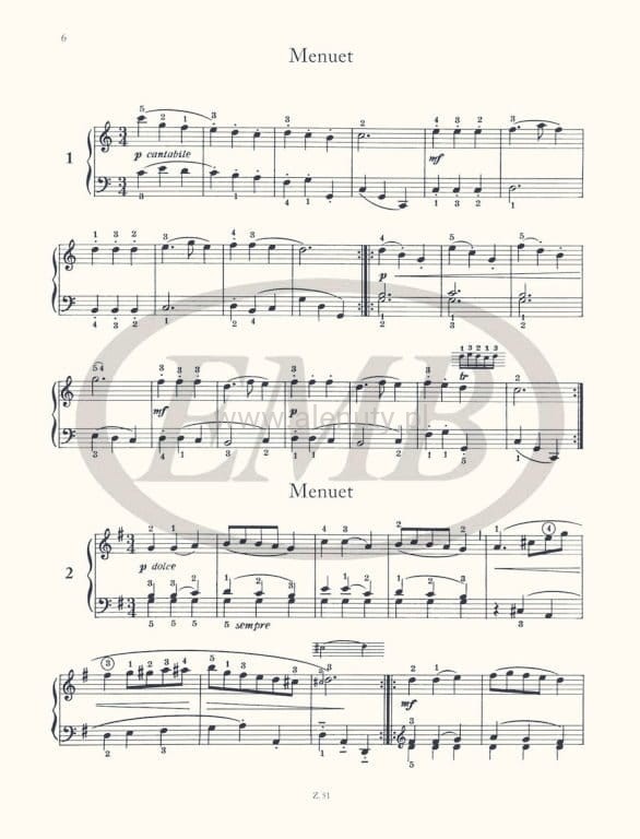 Nawet w wieku czterech lat Wolfgang Amadeus Mozart chłonął wszystko, co związane z muzyką czynił to bez większego wysiłku. Nie tylko znał już pierwsze instrumenty jak fortepian i skrzypce, ale też skomponował swój pierwszy koncert fortepianowy. Jego ojciec - Leopold Mozart z niedowierzaniem przyglądał się zapisom nałożonym na papier niewprawną ręką dziecka, zdając sobie sprawę, że wszystkie nuty zostały prawidłowo ułożone, zgodnie ze współczesnymi regułami muzycznymi. Od tego czasu uczył syna również sztuki komponowania: Wolfgang grał melodie na fortepianie, a jego ojciec zapisywał nuty na papierze. W ten sposób powstały m.in. tańce na klawisze. W wieku sześciu lat Wolfgang Amadeus Mozart skomponował menuet i trio na klawisze. Ta publikacja zawiera nuty na fortepian - krótkie utwory z dzieciństwa tego wielkiego kompozytora.