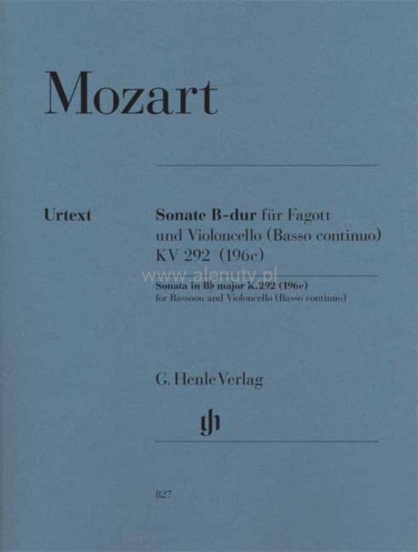 Wolfgang Amadeus Mozart: Sonate B-dur fur Fagott und Violoncello (Basso continuo) KV 292 - sonata na fagot i wiolonczelę - nuty na fagot, wiolonczelę i fortepian