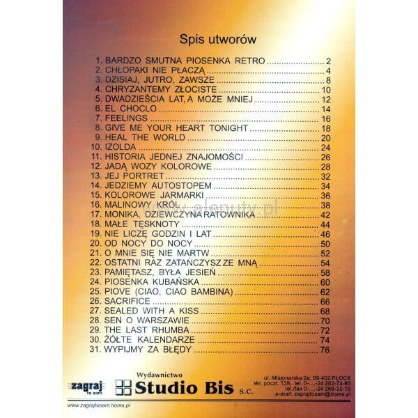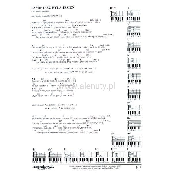 Największe przeboje polskiej muzyki rozrywkowej - nuty na fortepian, keyboard, funkcje harmoniczne (akordy gitarowe), teksty piosenek.