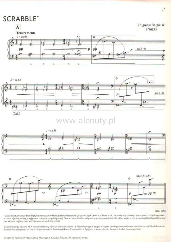Kolekcja utworów Zbigniewa Bargielskiego na fortepian dla starszych uczniów szkoły muzycznej I stopnia i szkoły muzycznej II stopnia oraz wszystkich tych którzy swobodnie czują się przy fortepianie.