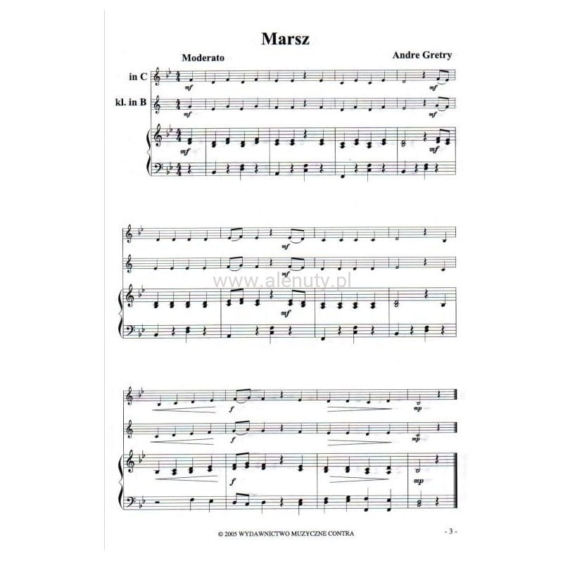 Publikacja zawiera zbiór 46 utworów wybitnych kompozytorów w łatwym opracowaniu na klarnet dla rozpoczynających naukę. Utwory zostały opracowane przez M. Czachowską w dwóch zeszytach.