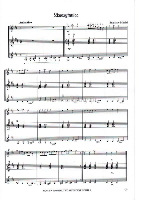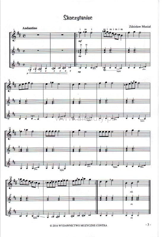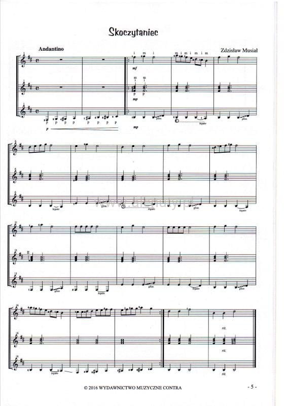 Utwory na zespoły gitarowe zawsze cieszyły się dużym zainteresowaniem uczniów, którzy je grali.To doskonała okazja do wspólnej pracy nad utworem - zmiany rytmu, artykulacji, dodawanie nowych szczegółów. Można również urozmaicając dodać nowy instrument lub zamieniać głosy. A niniejsze wydanie zawiera utwory na trzy gitary pochodzące z kompozycji XXI wieku. Wiele z nich zostało oryginalnie napisanych na trzy gitary. W utworach - jak pisze autor - zastosowano cały wachlarz technik gitarowych od klasycznych po współczesne. Wiele utworów nawiązuje do tanecznego stylu jak Polska, Reggae, Boogie, Rock and Roll.