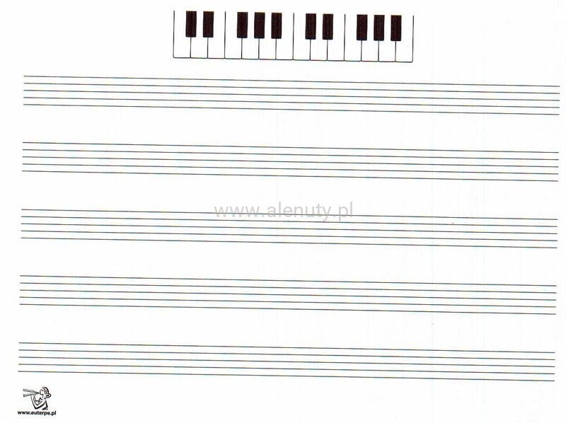 Zeszyt dla klasy drugiej i trzeciej szkoły muzycznej I stopnia; format: A5 leżący; pięciolinie 10 mm - po 5 pięciolinii na stronie; na lewych stronach dodatkowo u góry rozrysowana klawiatura fortepianowa. Na wewnętrznych stronach okładki znajdują się skondensowane wiadomości z zakresu teorii muzyki na temat gamy durowej i molowej, interwałów, trójdźwięków i grup rytmicznych w taktach ćwierćnutowych i ósemkowych.